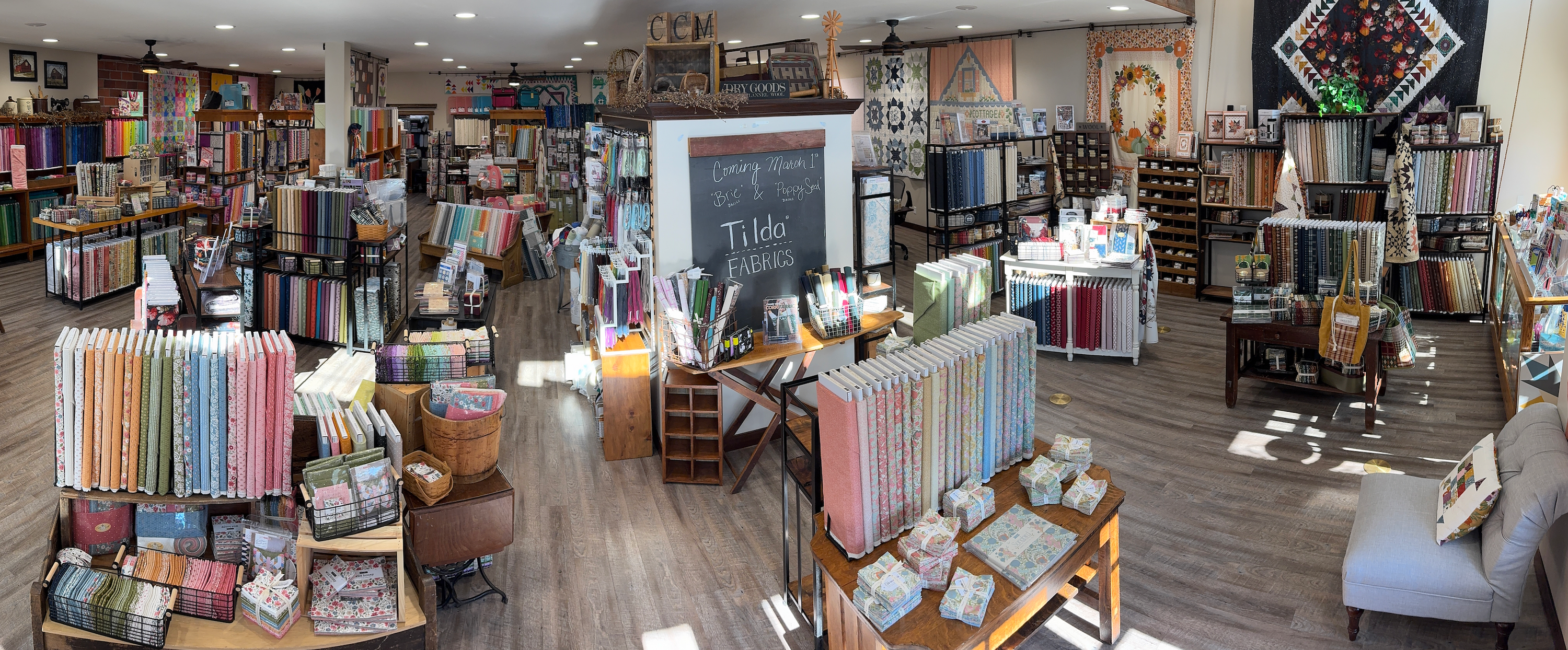 A great stop for both basics and new collections. Their grunge wall is exceedingly helpful for sashing, borders, and bindings. Tami and the team also ensure the newest seasonal and holiday collections are available.