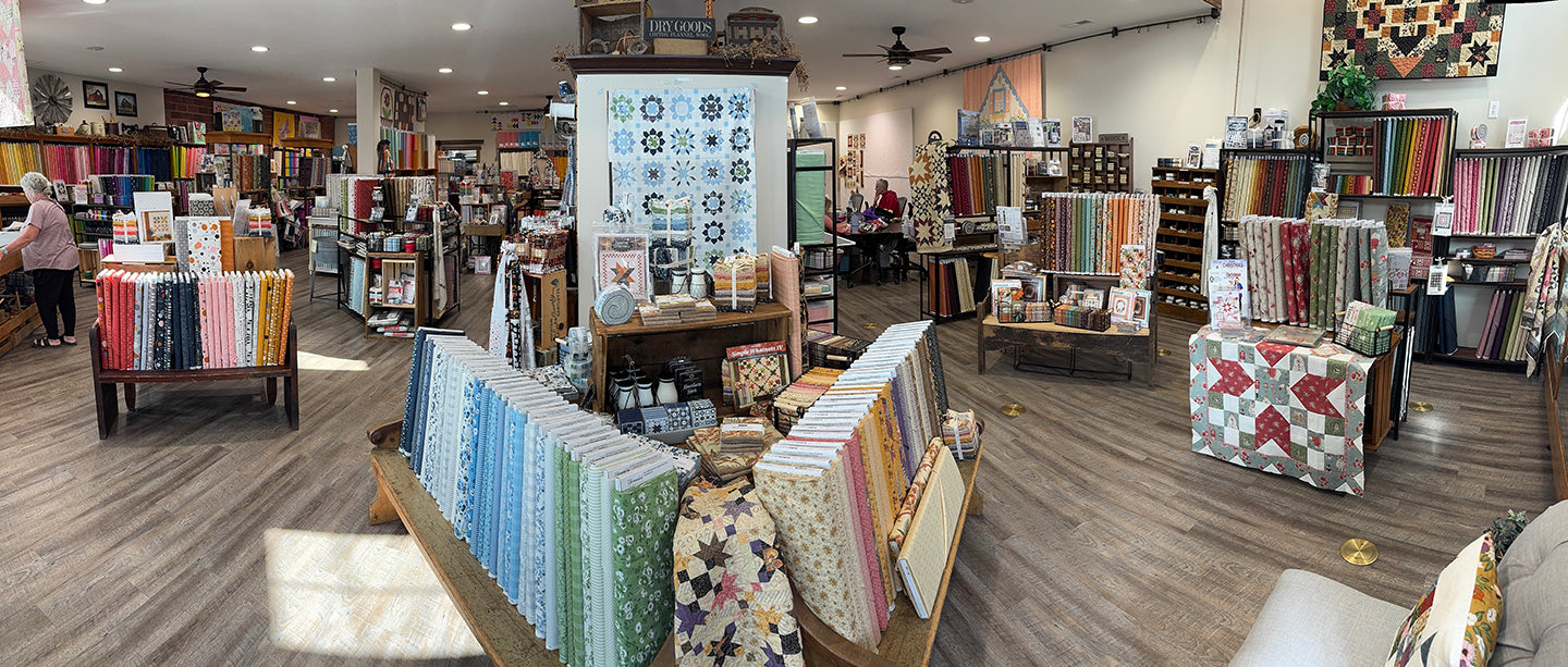 A great stop for both basics and new collections. Their grunge wall is exceedingly helpful for sashing, borders, and bindings. Tami and the team also ensure the newest seasonal and holiday collections are available.