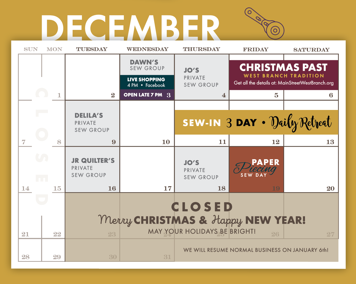 Excellent quilting store in the charming town of West Branch, IA. Store is packed with quilting/sewing fabric, notions and patterns. Staff was super helpful and friendly!